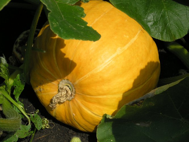 Кустовой сорт с очень вкусными плодами-великанами! Плод овально-округлый, гладкий, золотисто-оранжевый, массой до 10 кг. Мякоть жёлто-оранжевая, плотная, нежная, сочная, сладкая. Отлично хранится.
